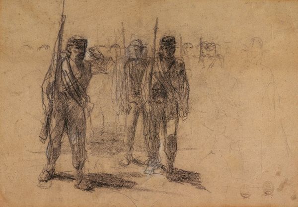 Winslow Homer created this pen and ink drawing, entitled "The Walking Wounded", during the American Civil War. Homer worked as a freelance artist, and his images provided glimpses into the daily lives and emotional landscapes of soldiers. Here, we are confronted with a stark depiction of the aftermath of battle. The sketch emphasizes the physical and psychological toll of war on the individual, revealing the wounded soldiers’ exhaustion and pain. These men were on the front lines of a nation divided, fighting in a conflict deeply intertwined with questions of race, freedom, and identity. The drawing prompts us to consider the human cost of war and the long-lasting impact on those who fought. The visual language here is a departure from romanticized war imagery, it's a move towards realism. "The Walking Wounded" is a meditation on the vulnerability of the body, the wounds of war, and the emotional weight of trauma.