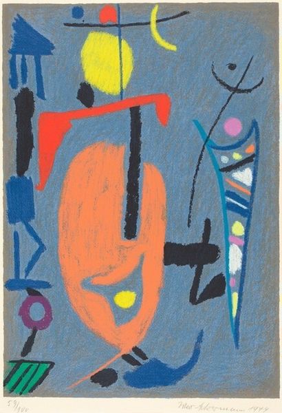 Editor: So, this is Paul Klee's "Die Schale des Herzens," or "Chalice of the Heart," created in 1937. It’s a drawing, and at first glance, the geometric shapes and muted colors create a sort of whimsical, yet unsettling feeling. What do you see in this piece? Curator: Klee’s work, particularly from this period, demands we consider the sociopolitical context. It was created during the rise of fascism, and his art was declared "degenerate" by the Nazis. Given this, doesn't the chalice itself seem less like a vessel of love, and more like a distorted representation of a wounded or fractured society? Editor: That's a really interesting point. I hadn’t considered the political landscape. The 'chalice' definitely has a fragility to it. How does this reading impact your interpretation of the symbols within the heart shape? Curator: Think about it. The symbols within – are they expressions of love and growth, or are they signs of injury and oppression? Klee was deeply interested in the power of signs and symbols to convey complex emotional and political truths. Maybe, he uses this symbolism as an act of resistance. How do you read those individual components, now? Editor: Now that I'm looking at it that way, those clusters that looked like berries suddenly feel more like bruises. It's incredible how shifting the context can completely change the perceived mood. Curator: Exactly. The power of art lies not just in its aesthetic qualities, but in its ability to engage in a critical dialogue with its historical moment. The personal and the political are always intertwined. Editor: This piece is way more complicated than I initially thought! I'll definitely need to remember this intersectional approach moving forward. Curator: Indeed. Hopefully, this deeper engagement reveals new possibilities. The drawing asks us to consider whose voices and experiences are privileged or suppressed within broader historical narratives.