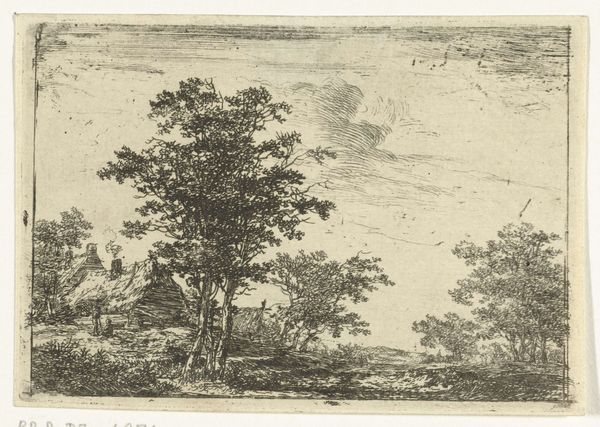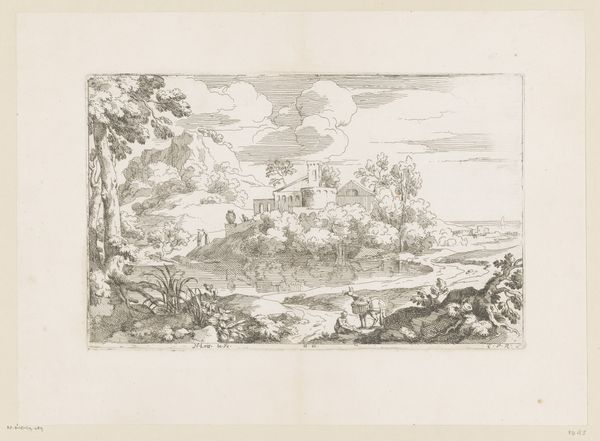 This landscape with ruins was etched by the Monogrammist MEG, inviting us into a serene yet melancholic vista. The ruined building, perched atop the hill, acts as a memento mori, a reminder of the transience of human achievement. This motif of ruins resonates deeply within the collective memory, echoing through the centuries. We see it mirrored in the romantic landscapes of the 18th century and even earlier, in the architectural fantasies of the Renaissance, each iteration reflecting a fascination with the rise and fall of civilizations. Here, the ruin symbolizes not only decay but also the passage of time and the inevitable return of all things to nature. The very act of depicting ruins speaks to a deep-seated human impulse: to grapple with mortality. It reflects the power of the subconscious in shaping artistic expression. This image calls us to reflect on the cyclical nature of history and the emotional weight of what once was.