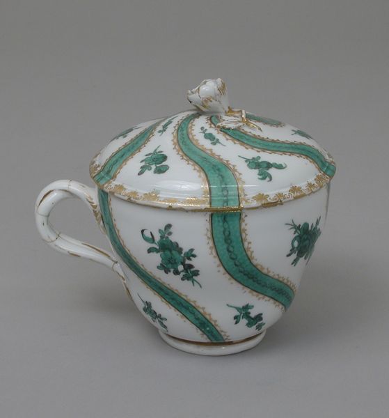 This covered bowl was made by the Chelsea Factory in England, sometime between 1742 and 1784. It is crafted from soft-paste porcelain and ornamented with molded and applied decorations. The Chelsea Factory was among the first porcelain manufacturers in England, producing luxury goods for a wealthy clientele. By the mid-18th century, such factories had become important sites for the production and consumption of visual culture. The delicacy of the bowl, along with its naturalistic motifs of strawberries, flowers, and insects, speaks to the Rococo tastes of the period. But beyond its aesthetic appeal, the bowl also reflects the social hierarchies of the time. Porcelain was an expensive material, and only the elite could afford such wares. To truly understand this object, we might consult factory records and period inventories, tracing the circulation of porcelain and its role in shaping social status.