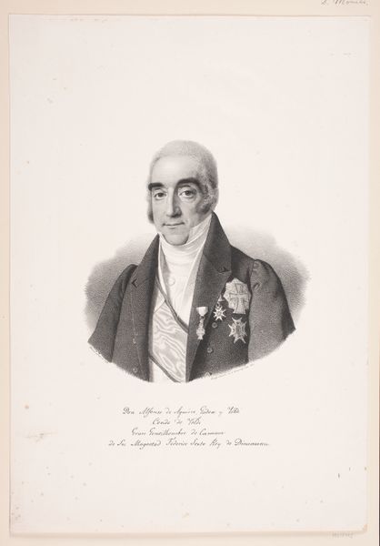 Curator: This is a portrait of Bernard Germain de Lacépède by Nicolas Maurin, made between 1825 and 1842. It is a pencil drawing showcasing realism, and hinting toward the Neoclassical style. Editor: The rendering feels stark. Look at that intense gaze—almost unsettling within such a tight composition and limited palette. It projects this… unyielding presence, don't you think? Curator: Indeed. Observe how Maurin meticulously rendered Lacépède’s features using only pencil, achieving incredible gradations of tone. Semiotically, each line contributes to the construction of the subject’s character, suggesting both intelligence and authority. Editor: And considering it’s pencil, you can see the very means by which this image was created—the graphite laid down on paper. But it's interesting to note the difference between his austere garments versus the softness of the man himself. This was made with great detail and care; labor intensive. Curator: Exactly. This highlights a Neoclassical fascination with line and form to idealize subjects. Consider the visual dialogue created: it suggests the weight of the office or status rather than warmth, something inherently human. Editor: It's a visual record, yes. What were the implications, say, regarding access to this image? Did Lacépède commission it, did people buy or make copies of it? Those reproductions would reach a broader audience who otherwise wouldn't ever see such an image. Curator: These are crucial material factors for our consideration. And to bring it full circle, such contextual readings help us appreciate how art serves both to portray and perpetuate power structures of the period. Editor: It's compelling to ponder how simple materials become the building blocks for both the artwork itself and this much bigger visual and social narrative. Curator: A successful convergence of form and material context, leaving us with much to contemplate about the nature of representation.