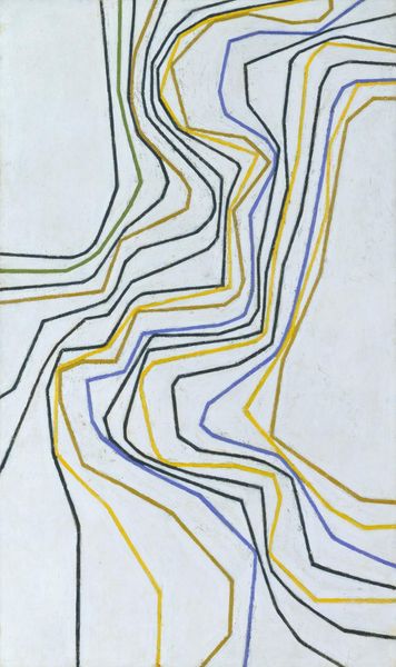 Editor: This is Brice Marden's "Third Letter," a mixed media piece from 2009. It’s quite striking – the winding lines give it a sense of contained energy, like a tangled web just waiting to spring loose. What is your interpretation of this work? Curator: Focusing solely on the visual components, consider the line. Marden presents line as both structure and surface. Note how the composition consists entirely of intertwined lines; color defines the boundary and mass, existing in a complex relationship with space. Do you notice how the positive and negative space creates a play that challenges traditional notions of figure and ground? Editor: I do, especially in the upper half, the yellow line almost reads as figure and ground at the same time. Is it intentional or do you think is it just something that emerged through the artistic process? Curator: Intention is always a slippery slope. However, let's examine how the material properties contribute to meaning. Marden’s method, the layering of diluted paint creates a sense of depth despite the flatness. The translucence blurs the distinctions and emphasizes visuality and perception, and you see, there is a conversation that takes place beyond narrative associations. Editor: That's interesting! So the meaning comes not from what it represents, but from how it’s made and how we see it. Thanks for showing me that! Curator: Indeed, exploring the artistic gesture and its material consequence reveals its very subject, beyond representational concern, to embrace optical experience. A fruitful approach for decoding art.