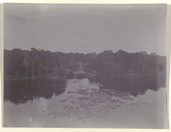 This photograph shows the 'Construction of the Lawa Railway over the Witti Watra in Suriname' by an anonymous artist. The photograph presents a scene dominated by horizontal and vertical lines, the bridge cutting across the frame, contrasting with the fluid, reflective surface of the river below. The composition is structured by the stark geometry of the bridge, counterpoised by the organic forms of the surrounding forest, creating a play between the man-made and the natural. The bridge serves as a conduit, both physically and metaphorically, linking disparate realms and cultures. We can read the visual structure through a semiotic lens, seeing the bridge as a signifier of progress. Yet, its imposition upon the landscape also signifies transformation and potential disruption. Note how the photograph uses linear perspective, drawing the eye towards a vanishing point, suggesting infinite expansion and the ongoing nature of such endeavors. Ultimately, this artwork captures a moment of profound cultural encounter, prompting reflection on the structures of power, progress, and representation inherent in the colonial project.