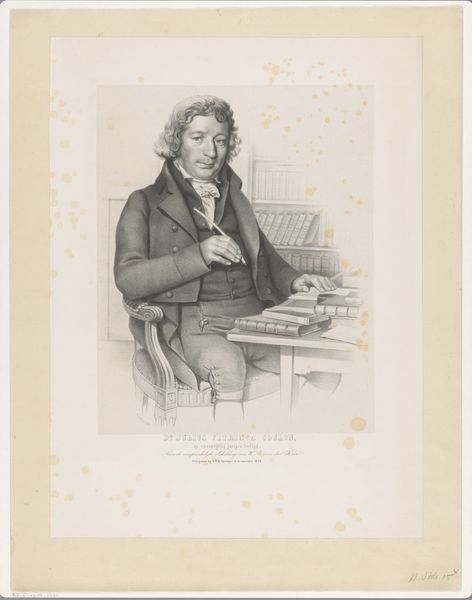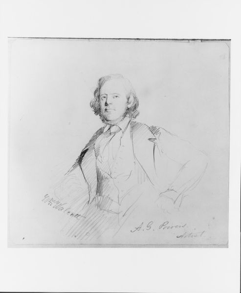 Editor: So this is Carl Küchler’s portrait of Albert Thorwaldsen. It looks to be a print or drawing. I’m struck by how the aging of the paper gives it an almost ghostly quality. What can you tell me about it? Curator: Well, it certainly has that spectral vibe, doesn't it? Küchler captures Thorwaldsen, the great sculptor, in a light that’s both reverent and…dare I say, a bit melancholic. Notice the fine lines, the delicate shading. It’s as if Küchler is trying to capture not just his likeness but his very essence. Do you think he succeeds? Editor: I do. It feels intimate, like we’re peering into Thorwaldsen's soul, and perhaps Küchler’s too. Curator: Precisely! It reminds me of a quote from Thorwaldsen himself: "My art is my life, and my life is my art." Perhaps Küchler aimed to capture that very sentiment. A true reflection within a reflection.