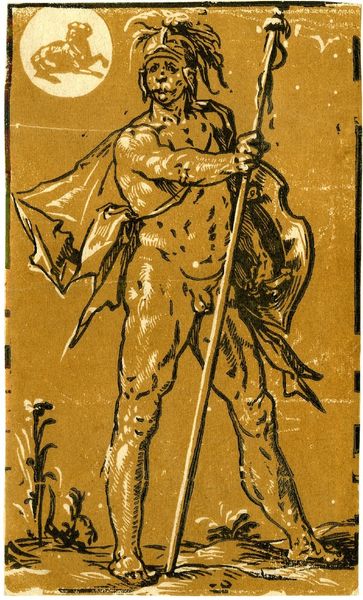 Editor: This is Hendrick Goltzius's "Mars," made between 1586 and 1590, a print now housed in the Rijksmuseum. He's rather… intense. I’m struck by his muscular build and the elaborate helmet, almost grotesque. What do you see in this piece, and what might it tell us about the cultural context of the time? Curator: The image vibrates with an inherited visual language. Mars, here, isn’t just a Roman god of war; he is the embodiment of martial ideology, made visible. The exaggerated musculature, the almost theatrical helmet – these are not simply decorative. Look closely – what do you notice about the plumes? Editor: They look like strange fingers or claws… almost skeletal? Curator: Precisely. These 'plumes' subtly allude to death, linking the glory of war with its grim reality. The Mannerist style heightens the emotional impact. What emotions are evoked for you? Editor: Definitely unease. It's like a celebration of strength that’s tainted by something morbid. The helmet, which should be glorious, hints at something darker. Curator: The artist is tapping into a complex cultural memory, presenting war as both a spectacle and a source of anxiety. He plays with the ambivalence of Mars - both a god of power and destruction. And it's not glorifying one element without showing a cost, with these little memento mori touches. What remains with you? Editor: That symbols aren't static. They shift meanings, echoing through different eras and contexts, changing our understanding. Even what looks heroic could hide anxieties underneath. Curator: Yes. The enduring power of symbols, continually reinterpreted, offering new insights with each encounter, remains potent.