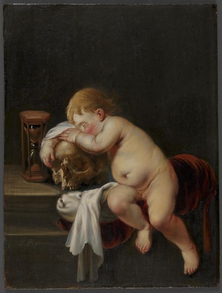 Jacob van Loo painted Venus and Cupid, now at the SMK, using oil on canvas. The composition is immediately striking, built around the soft, luminous forms of the figures against a dark, brooding backdrop. The artist’s handling of light and shadow creates a palpable sense of volume, accentuating the texture of the skin and fabric. Van Loo employs a classical subject, yet his treatment is anything but formulaic. Notice the subtle asymmetry in Venus’s pose and the intimate interaction between mother and child, which destabilizes traditional allegorical readings, inviting instead a more personal, psychological interpretation. Semiotically, Cupid's arrow loses its power as a symbol of love. The composition suggests an exploration of form and sensuality. Consider how the formal elements—the play of light, the balance of forms, the nuanced color palette—converge to create an artwork that transcends its mythological subject matter, and engages with broader questions about beauty, desire, and human relationships. The artwork invites ongoing interpretation, offering a space to consider how classical motifs can be re-imagined and re-contextualized.