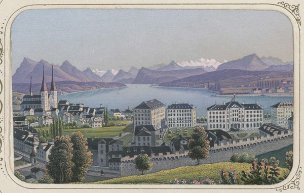 Rudolf Dikenmann made this view of Zurich with watercolor and gouache. The image presents an orderly, prosperous city, its architecture reflecting the importance of trade and governance. Here, the artist uses a bird's-eye view and a panoramic sweep to create meaning. The picturesque mountains in the background and the clean, modern bridges and public buildings reinforce an impression of civic pride and natural resources. We might consider how the neutrality of Switzerland during times of war enabled its institutions to grow, making possible the modern cityscape on display here. The buildings and places represented in this image have a historical resonance and symbolic significance that would have been clearly understood by Dikenmann's contemporaries. As historians, we can look at city plans, trade statistics, architectural drawings, and other paintings to understand the conditions that shaped the artist's vision and that determined how his audience would have understood it. We can then understand the painting's role in shaping social values.