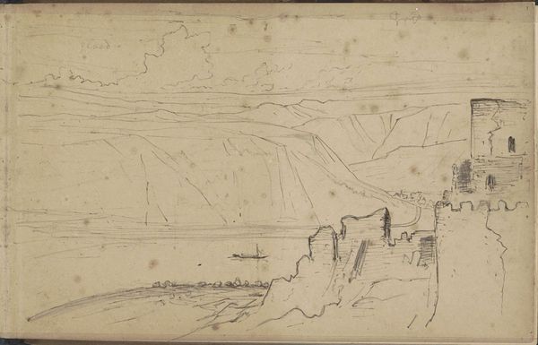 Editor: This is Philip James De Loutherbourg’s "Hillsides and Buildings near the Fforest Copper Works." It's a quick sketch, maybe a study, in ink, and evokes a sense of the industrial revolution encroaching on the natural landscape. What do you see in this piece? Curator: I see a powerful commentary on industrialization's impact. The copper works aren't just buildings; they represent exploitation of both the land and its people. Do you see the smoke? It pollutes the air, symbolizing the disregard for environmental and social well-being. Editor: That's a strong interpretation. I hadn't considered the smoke as a symbol of disregard. Curator: De Loutherbourg was working during a time of immense social change. He was illustrating the cost of progress, and how some people were benefiting at the expense of others. It's a theme that resonates even today. Editor: I guess I saw it as just a landscape sketch, but it’s so much more complex. Thanks for helping me see it differently. Curator: My pleasure. Art can be a mirror reflecting society’s challenges, then and now.