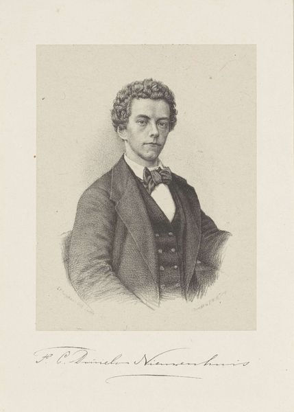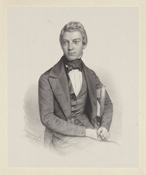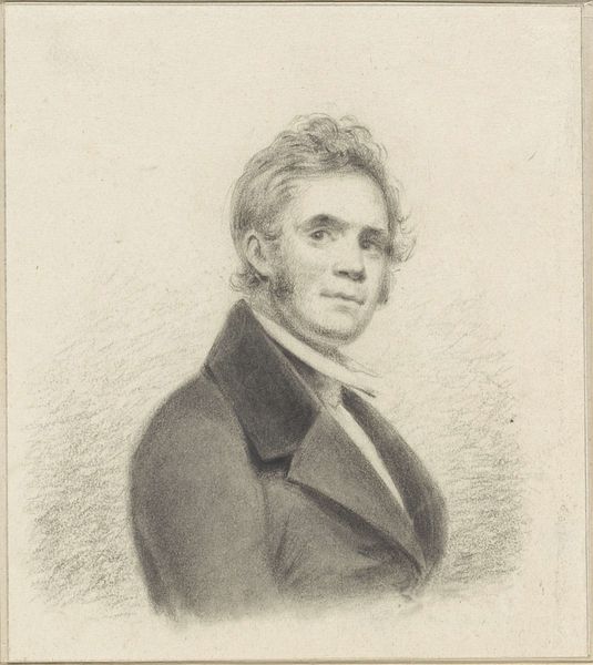 Editor: This is "Portrait of Jean Reboul," a pencil drawing from the late 1820s or 30s. It's struck me how… contained the figure feels, almost compressed into the space, even though it's just a bust. How do you interpret the piece, looking at it formally? Curator: The composition immediately signals a preoccupation with line and tonal gradation. Note how the artist uses delicate hatching to model the form, focusing on subtle shifts in light and shadow. This rigorous approach to representing volume and texture elevates the drawing beyond mere representation, drawing attention to its inherent materiality. Editor: So it's not just *what* is depicted but *how*? The focus feels almost mathematical. Curator: Precisely. Observe the contrast between the relatively smooth handling of the face and the more active, almost energetic treatment of the hair. Do you perceive a reason for this distinction in technique? Editor: Maybe to emphasize texture, differentiate surfaces. Or to guide the eye? Curator: Indeed. The differing textures activate the surface, lending visual weight where needed. Consider, also, the deliberate positioning of the subject within the frame, seemingly cropped in on all sides. Do you discern any implications there? Editor: That controlled sense that I felt. An exercise of line rather than expression? Curator: It pushes the portrait, a historical genre for commemorating and portraying individuals into almost abstraction via its study of form and tone. Which prompts an appreciation for the materials involved and the deliberate handling that manifests in front of our eyes. Editor: I see, focusing on how technique impacts how the subject of the portrait becomes less relevant, and how the materials, become the art. Curator: Exactly! It highlights formal properties to be recognized as meaningful. I now think differently, the artist and this process becomes the focal point to observe in our mind’s eye!