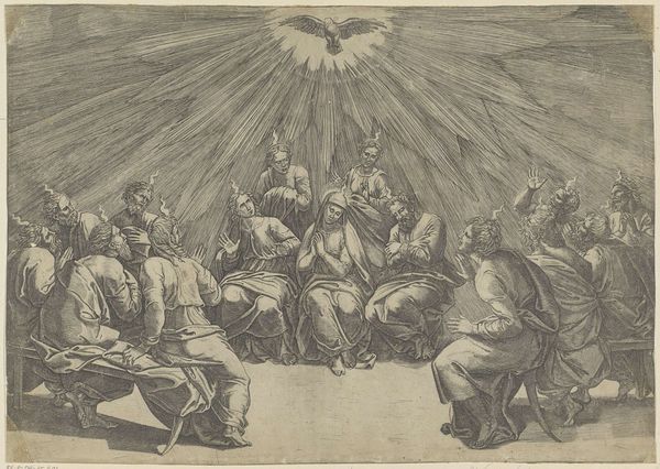 Vincenzo Camuccini made this drawing called 'Christ in Glory with Saints' using pen and brown ink with white gouache on brownish paper. Camuccini was a leading figure in the Neoclassical movement in Italy, which sought to revive the artistic ideals of ancient Greece and Rome. He also served as the director of the Neoclassical Academy of San Luca in Rome. This drawing reflects the period's emphasis on clarity, order, and moral virtue. The image depicts Christ in a classical style, surrounded by saints, seated on clouds, and angels. The composition recalls the Renaissance ideals of Raphael, with its balanced arrangement and idealized figures. Camuccini's neoclassical style was closely associated with the Vatican, and this drawing could reflect the Catholic Church's efforts to promote its religious and political agenda through art. To fully understand this drawing, we might consult Camuccini's letters and papers, alongside the writings of art critics and historians of the period. By examining the social and institutional contexts in which it was created, we can better appreciate its significance as a cultural artifact.