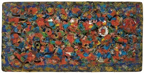 Emily Kame Kngwarreye made this untitled painting with acrylic on canvas, and it's a trip! The whole thing is built from dots, a process that feels connected to pointillism, but looser, more intuitive. It’s like she’s feeling out the space, letting each dab of paint inform the next. I love how the earthy reds and browns meet these vibrant pools of blue. Up close, you can see the texture, the physicality of each mark. The way the paint sits on the canvas, it’s almost sculptural. This area here, with the layering of white, green, and brown, reminds me of a garden after the rain. It’s so alive, buzzing with energy. Kngwarreye’s work makes me think of Hilma af Klint, both artists exploring unseen worlds through color and form. Ultimately, Kngwarreye’s painting reminds me that art is about more than just representation, it’s about feeling, about connecting to something deeper, and about embracing the unknown.