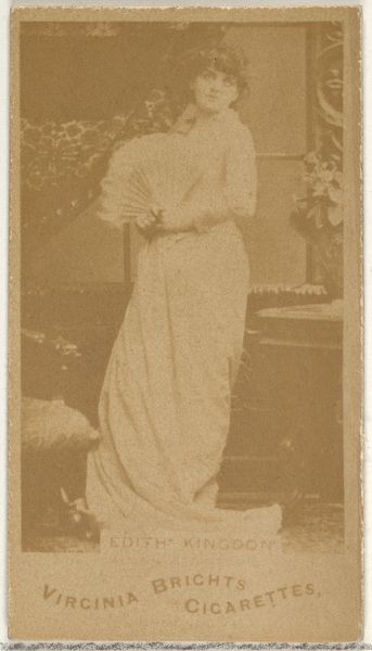 This photograph of Cora Parker comes to us from a series of collectible cards, distributed with Virginia Brights Cigarettes. The cards were a chromolithograph, a color printing technique that uses multiple lithographic stones, each applying a different color to the final print. The process demanded skilled labor to achieve a high-quality image, and the choice of this method reflects the marketing strategy to associate cigarettes with sophistication and luxury. What is more, though the image presents an actress, the card itself was a product of factory labor. Think of the many hands involved in growing, harvesting, curing, and processing the tobacco, printing the cards, and assembling the final product. The card's small size and mass-produced nature contrast with the artistry of the chromolithography. These cards blurred the lines between art, advertising, and everyday life, inviting us to consider the complex relationship between artistic expression and the commercial forces that shape our material world.