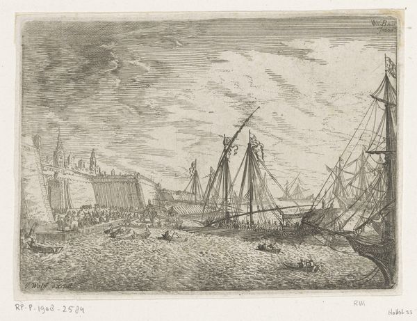 Izaak Jansz. de Wit created this print of the beach at Scheveningen in 1793. It depicts the launch of a fishing vessel, a ‘pink’, surrounded by a crowd of onlookers. This image offers us a glimpse into the social and economic life of a Dutch coastal community during the late 18th century. The print highlights the communal effort involved in shipbuilding and launching, suggesting the importance of maritime activities for the local economy. We can observe the social hierarchy through the attire of the figures, with wealthier individuals standing apart from the laborers. The church in the background is a reminder of the influence of religion in daily life. To understand this work fully, we can look at local archives, shipping records, and studies of Dutch maritime history. This will reveal the significance of fishing to the Dutch economy and culture and uncover more about the social and economic structures of the time.