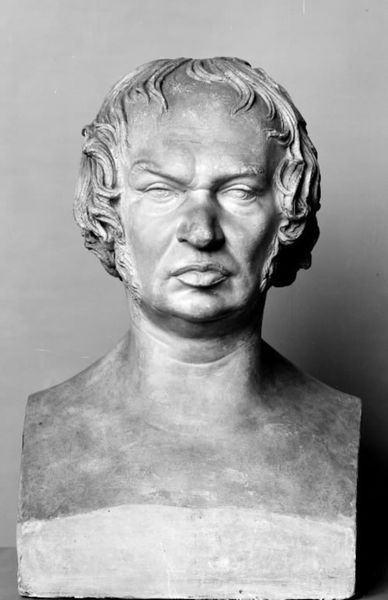 Editor: This is a marble bust created by H.W. Bissen in 1841, titled "Kunsthistorikeren N.L. H\u00f8yen." It's strikingly lifelike, almost unsettlingly so. I'm curious, what story does the material itself – the marble – tell us? Curator: It speaks volumes about the aspirations of the Danish bourgeoisie at the time. Marble, historically associated with aristocratic power and classical ideals, signals H\u00f8yen’s elevated status. Consider the quarrying of this marble, the labour involved in its extraction and transport – all reflecting economic structures and trade networks of the era. Who had access to marble, and what did it mean to commission such a piece? Editor: So, the choice of marble isn’t just aesthetic; it’s a statement about access and social standing. Was Bissen specifically chosen for his skills, and were there other sculptors at the time, and why not them? Curator: Precisely. Bissen was a key figure in promoting Neoclassicism, a style that served to legitimize particular values, and certain elites. Consider also the act of artistic production, of physically working the material. Did Bissen himself execute the piece entirely? Or were there assistants involved, their labour perhaps unacknowledged in the final artwork, essential for such demanding labor? These elements reflect a whole nexus of labor practices. Editor: That makes me think about how we value the 'artist's hand' and if it needs re-evaluating considering there were probably a lot of people working on it. What did the process of creating this bust look like back then? Curator: Well, photographic records from the 1840s show some artist studios. Let's consider the conditions that this sculptor, or rather his employees worked under in their workshop. What kinds of tools were available at the time, and how would the available lighting affect their level of expertise in using those instruments. Editor: So looking at the statue then makes you want to research all of this about the artistic process rather than just what it looks like? Curator: Absolutely. For me, the artwork opens into considering wider economic and labor questions. Editor: That’s a fascinating perspective, emphasizing how materials and production unveil layers of meaning I hadn’t considered. Thanks! Curator: My pleasure! Looking closer changes everything.