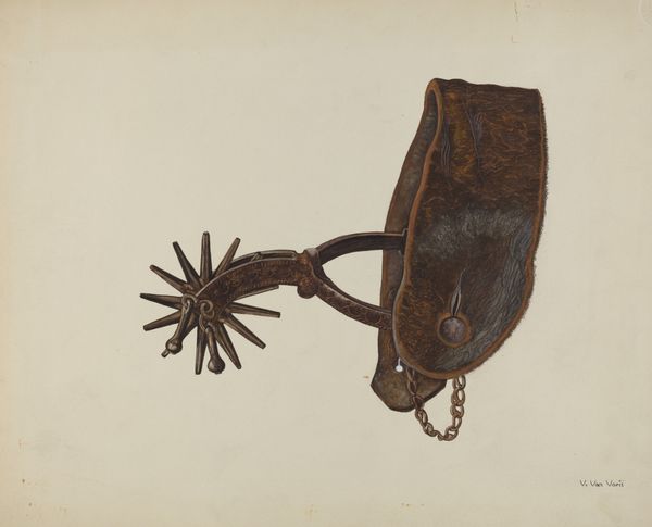Paul Lauterbach made this drawing of a Peak Halyard Band in 1938, using what looks like graphite and watercolor. I love the color palette; it’s so earthy, with all those browns, tans, and grays, like the colors of the beach. It’s interesting how Lauterbach handles the material aspects of the piece. The surface has this incredible texture, almost like scales, but it's also really smooth and gentle. You can almost feel the rust of the band! Look at the way the light catches on the right side of the band. It’s really built up to suggest a rough surface. It reminds me of some of the work of Marsden Hartley, he also had a great way of combining abstraction and representation. In the end, I think there is an ambiguity in this piece, and that’s one of its strengths. It doesn't tell us exactly what to think or feel. It just is.