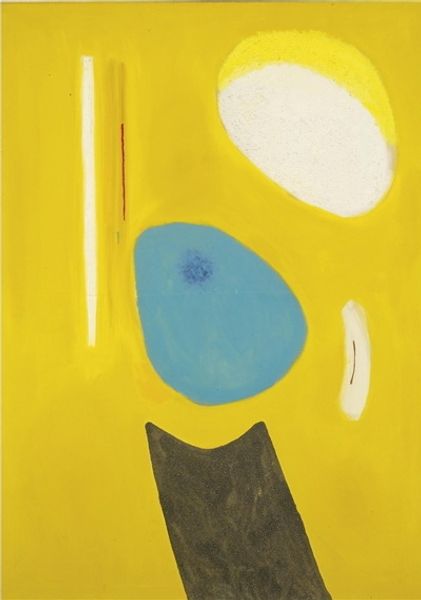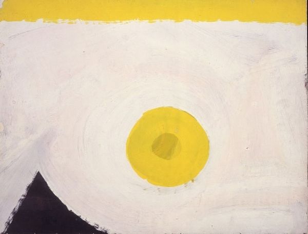 Editor: This is Charles Garabedian’s "Chinese Mr. Hyde" from 1975, rendered in acrylic paint. I’m immediately struck by its unsettling quality, the almost childlike rendering of the face combined with these strangely discordant textures. How do you interpret this work? Curator: I see a fascinating exploration of the very act of painting. Look at how Garabedian deploys the acrylic. He builds up these almost crude layers, contrasting the smooth, almost vacant expanse of the face with these aggressively textured areas in the lower section and around the eyes. Do you think the title suggests something about how identity is constructed and perhaps masked or fragmented? Editor: Yes, definitely! The idea of "Mr. Hyde" layered onto a "Chinese" identity hints at masking and perhaps the manipulation of materials to present different faces. The crude application of the acrylic almost feels like a deliberate attempt to dismantle any cohesive representation. Is he maybe challenging the viewer to see past surfaces? Curator: Exactly! He seems less concerned with illusionism or accurate representation and more with exposing the inherent properties of the acrylic and how it's manipulated. It forces us to consider painting as a physical process, as a construction of layers of material and texture, not merely as a window onto a pre-existing reality. And in 1975, this rejection of traditional art making aligns him with process-oriented artists who question high art boundaries. Editor: So it's less about 'who' is being represented and more about 'how' representation happens through material means? Curator: Precisely. The social context here includes the art world's turn away from formalism and towards embracing everyday materials. Garabedian seems to use a traditionally “fine” art material (acrylic) to create an "outsider" aesthetic that critiques both cultural stereotypes and the established art system itself. Editor: That’s fascinating! I initially saw just a strange portrait, but understanding the emphasis on the process and materiality changes everything. Curator: Indeed. Looking at art from this perspective opens up a whole new dimension of understanding!