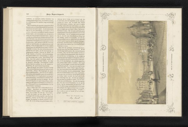 Editor: This is Jean Louis Tirpenne's "Château-d'Eau in Parijs," created before 1840. It’s a lithograph and engraving on paper. What strikes me is the wintry scene—you can almost feel the chill. What's your take on this work? Curator: Considering Tirpenne's lithograph and engraving, I'm interested in the materiality of printmaking itself. How did the reproductive process affect the distribution and consumption of images of Paris? Editor: That's an interesting angle, I hadn't thought about that. Curator: Before photography, these prints served as a primary means for people to visualize places they might never visit. It democratized access to Parisian cityscapes. Note the specific texture achieved by the lithographic stone and engraving tools. This dictated the final visual experience. How might that production, using those specific materials, impact what was communicated and perceived about Paris? Editor: So you're saying the choice of lithography and engraving, instead of say, painting, makes a statement about accessibility and mass consumption? Curator: Precisely! Furthermore, consider the labor involved in producing multiple editions of this print. It wasn’t a unique object created by a single artist but a product of collaboration and mechanical reproduction. How does that shift our understanding of artistic value? Editor: So the artistic value is tied less to individual genius and more to the work and democratization of distribution. Curator: Exactly. Editor: This reframes how I see the work, moving away from a romantic depiction towards a study of production and social context. Thanks! Curator: And understanding the materiality and process allows us to appreciate how images shaped perceptions and participation in urban life.