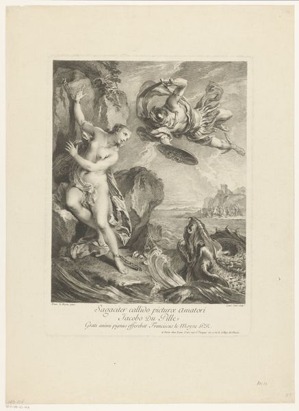 Editor: So, here we have "Amor vertrekt op jacht," or "Cupid departs for the hunt," a print from the late 18th century by L. Angélique Martinet. There's a strange sense of childishness combined with a darker, almost satirical, edge to it. What's your interpretation? Curator: Well, it's crucial to place this within the social and institutional context of 18th-century Europe. The Rococo style, often playful, also served specific power dynamics. Who do you think was the target audience? Editor: Probably the aristocracy? Something meant to be decorative and witty? Curator: Exactly. The figure of Cupid was used to soften political and social commentary. See how hunting, a leisure pursuit of the elite, is being comically appropriated by Cupid? It’s almost as if the artist critiques aristocratic leisure under the guise of entertainment. Do you notice anything about the public role that this piece takes on as a result? Editor: It's meant for enjoyment, yes, but it's not simple mindless decoration because it brings a certain form of judgement. Almost like, "Aren't the elite ridiculous?" Curator: Precisely. It makes one question the relationship between art, power, and the public's perception of those in power. What seems like frivolous entertainment could, in reality, challenge societal norms through satire, influencing the public and the court simultaneously. Editor: I see! The artist utilizes humor as a vehicle to both appeal to, and critique, the establishment. The politics of imagery become much clearer now. Curator: Right, the print highlights art as a cultural instrument used to address the values and follies within 18th-century European society. Editor: It changes my perception of the piece quite radically. Seeing how intertwined it all is - patronage, public role, socio-political statements, humour… It’s much richer than what I thought at first.