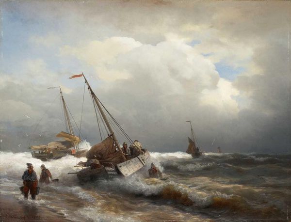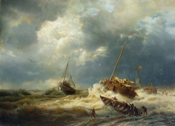William Bradford captured this Shipwreck off Nantucket in paint at an unknown date. The site depicted here isn’t a generic one; Nantucket Island was the center of the 19th century whaling industry. We can imagine this scene reflecting the risks involved in the industry. The dramatic composition, full of dark waves and stormy skies, speaks to the dangers of maritime work. As Bradford became known for his Arctic scenes, we may see him commenting on humanity's relationship with nature. Was it a source of wealth or a dangerous challenge? Note the small boat struggling in the foreground, dwarfed by the wrecked ship. The American flag remains on the mast, yet its meaning is uncertain. Is it a symbol of hope or a reminder of loss? To fully understand this image, we can consult archives relating to the whaling industry and its impact on communities like Nantucket. We must consider art as a product of historical and social forces.