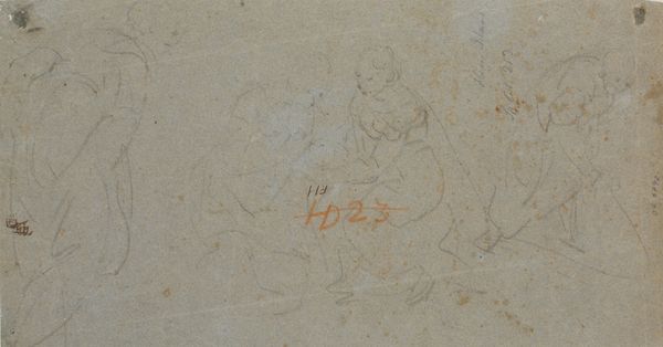 Editor: This is "Lost Sketch of a Composition with Vase and Pitcher" made sometime between 1625 and 1677 by Heinrich Dittmers, and it's a pencil drawing. It feels more like a ghostly echo of a still life. The blue paper enhances the dreamy quality. What do you make of this wispy image? Curator: It's like stumbling upon a forgotten thought, isn’t it? Dittmers isn't just showing us a vase and a pitcher; he's giving us access to his creative process, his hesitations, the very first breath of an idea. It feels so intimate, like he’s whispering to us across centuries. Notice the confidence in some lines and the tentative, searching quality in others. Does it feel finished or incomplete to you? Editor: Incomplete, definitely. I can almost see his hand moving across the page, trying to find the right form. I imagine it's a study for something larger. Curator: Precisely. Or perhaps it’s complete in itself – a moment captured. Early sketches offer incredible insight into how an artist perceived everyday objects, transforming them through line and shadow. Imagine the scene; light playing across the surfaces. It reminds me that even the simplest subjects, seen through an artist's eyes, can hold profound beauty. Did you notice anything unexpected? Editor: I am surprised by the wiggly line right above the objects, at the top, which I cannot interpret… Perhaps a line to test the medium, a visual 'tuning fork'? Curator: Haha, a tuning fork indeed! The joy of the drawing lies also in the possibility of unexpected. Seeing a piece like this always prompts me to grab my own sketchbook, reminding me to embrace the beauty of impermanence. Editor: Me too, like catching lightning in a bottle... it invites one to look and look, imagining a myriad of forms out of a single glimpse!