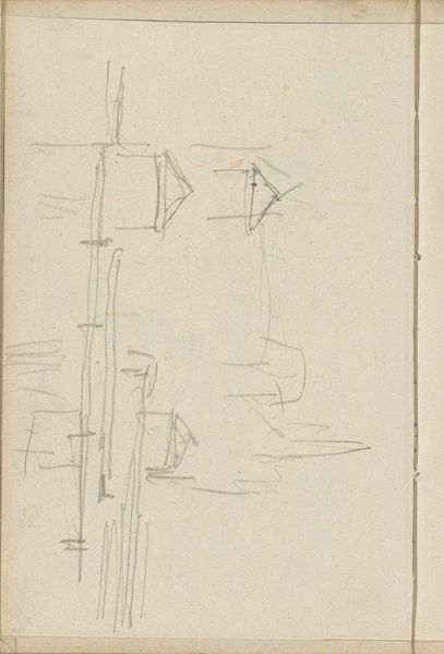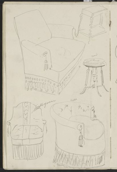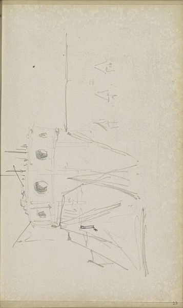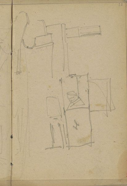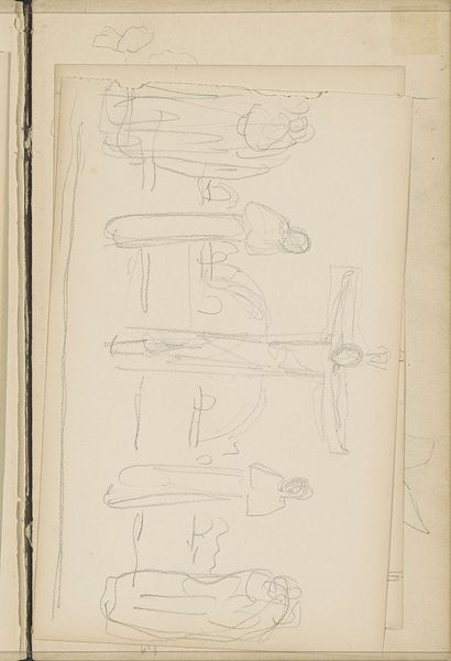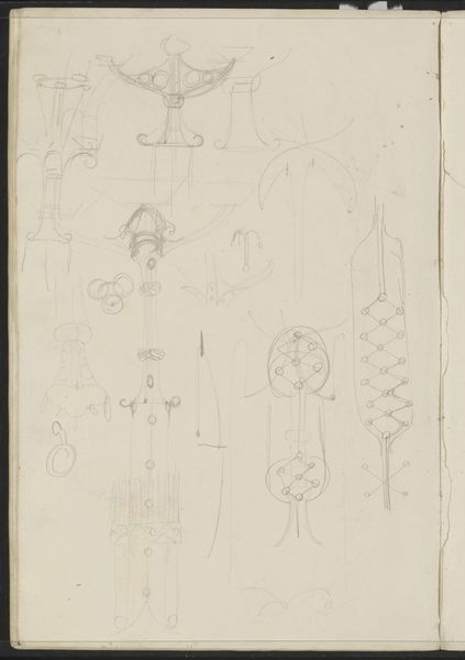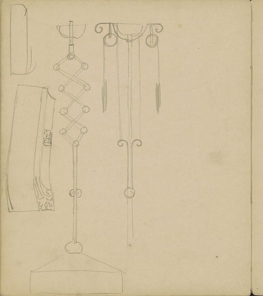 Curator: This pencil drawing, created around 1906 by Carel Adolph Lion Cachet, is titled "Ontwerpen voor wanddecoratie en architectuurstudies," which translates to "Designs for Wall Decoration and Architectural Studies." It’s part of the Rijksmuseum's collection. Editor: My first thought? Delicate, like a whisper of Art Nouveau trying to find its form. There’s a dreamlike quality, as if Cachet sketched these ideas directly from his imagination onto the page. Curator: Indeed. Lion Cachet was a pivotal figure in the Dutch Art Nouveau movement. These are preliminary sketches; imagine these refined designs gracing the walls of fashionable homes or public buildings of the era. Art Nouveau saw widespread integration in structures. Editor: It’s the incompleteness that fascinates me. These fragments – a column here, a frieze there – suggest grand spaces without defining them. Is it me, or does it feel deeply optimistic? Like a hopeful future being mapped out. Curator: Art Nouveau emerged during a time of rapid industrial change, offering organic aesthetics that softened stark modern landscapes. We see Cachet blending geometric elements with the fluid, organic shapes characteristic of Art Nouveau to that very point. Consider his vision and ambition: his architectural designs were inherently entwined with societal progress. Editor: These look like very personal jottings. How aware was Cachet of how his designs would affect everyday experiences, and the overall societal values and outlook of his time? I wonder if he knew back then that his art could stand to shape a nation's vision? Curator: These studies highlight a beautiful connection between interior aesthetics and broad cultural ambitions, a true testament of art to future societal values, wouldn’t you say? Editor: Definitely. It’s funny how seemingly simple lines on paper can unlock entire worlds, both the world that was and the world that might have been. Curator: Absolutely. I think this drawing, through the elegance of simplicity, inspires further explorations into Lion Cachet's contributions and the social function of architectural design.