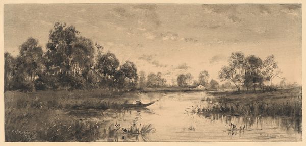 Isaac Levitan rendered ‘Gray day. River.’ in an indeterminate year using charcoal on paper. The drawing immediately strikes us with its muted tones and somber mood, achieved through Levitan’s masterful manipulation of charcoal. The composition, with its emphasis on the horizontal lines of the river and land, evokes a sense of stillness and quiet contemplation. The artist’s application of charcoal varies from soft, smudged strokes in the sky to more defined, textured marks in the foreground vegetation. This contrast creates depth and invites the viewer's eye to move across the landscape. Levitan's use of light and shadow is particularly noteworthy; the gray sky casts a diffused light that softens the scene, while darker areas provide contrast and definition. The overall effect is one of understated beauty, capturing the subtle nuances of the natural world. The piece resonates deeply with a sense of melancholic introspection, suggesting a world in constant flux, where meaning is provisional and open to personal interpretation.