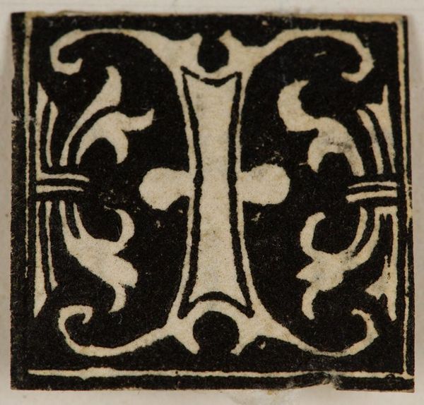 Editor: So this small piece is titled “Letter E,” by an anonymous artist, here at the Harvard Art Museums. It looks like a stamp or a print of some kind. What strikes me is how ornate just a single letter can be. What do you see in it? Curator: It reminds me of illuminated manuscripts, each letter a portal to a world. I wonder, what kind of world does the letter “E” open for you? For me, it whispers of "Ephemeral," something fleeting, or maybe "Eloquent," a silent story. What do you think? Editor: I hadn't considered that! I was stuck on the visual, but I like how you connected it to words beyond just the letter itself. Curator: Art's like a Rorschach test, isn't it? It's not just about what's there, but what *we* bring to it. Editor: That’s a great point.