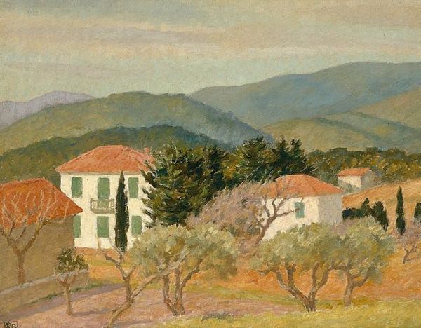 Editor: We’re looking at Rupert Bunny’s “Blue Day, Bandol,” painted in 1929. It's an oil painting depicting a coastal cityscape in the south of France, radiating a tranquil and almost dreamlike quality. What strikes you most about this work? Curator: What immediately grabs me is its reflection of the era's sociopolitical undercurrents through its idyllic veneer. Bunny, an Australian expatriate, paints a picture-postcard scene, seemingly detached from the interwar anxieties brewing across Europe. But is it truly detached? Or is this deliberate escapism, a privileged gaze seeking solace in beauty, while the world teeters on the brink? Editor: That's an interesting point. I hadn't considered the element of escapism. I was more drawn to the pure aesthetic pleasure of the composition, the interplay of blues and terra cottas. Curator: Precisely. Consider also how the plein-air style—traditionally associated with freedom and immediacy—might also symbolize the constraints of privilege. Who has the liberty to simply observe and paint en plein air? Whose stories are absent from this ostensibly universal vista? Can we even use the term universal to apply to art produced by white cis men when in fact many voices have been suppressed in art spaces for decades? Editor: So, you’re suggesting we shouldn’t take the painting at face value but rather examine its social context and the artist's positionality? Curator: Absolutely. We can appreciate the technical skill while interrogating the unspoken narratives—the power dynamics inherent in who gets to represent whom, and how. This seemingly innocuous landscape then becomes a powerful site for examining class, privilege, and the complexities of artistic representation in the early 20th century. Editor: I never would have thought to look at it that way. It really opens up a new dimension of understanding. Curator: Indeed. It's in this intersection of art history and contemporary theory that we truly unlock the potential for meaningful dialogue. Editor: Thank you. I’ll definitely be approaching landscapes differently from now on.