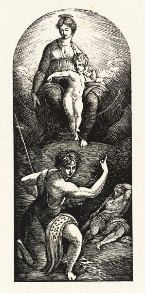 "Plate 3: Jupiter emerging from a niche, riding an eagle and holding a thunderbolt in his left hand," was created by Giovanni Jacopo Caraglio, in the 16th century, a period marked by the Renaissance's revival of classical antiquity. Caraglio's print presents Jupiter, the Roman iteration of Zeus, as a figure of supreme power and authority. The god's muscular physique and commanding presence reflect the era's fascination with idealized human forms. Simultaneously, this depiction reinforces a patriarchal image of power, deeply rooted in the socio-political structures of the time. Jupiter’s dominance over the eagle, a symbol of imperial strength, speaks to the period's investment in hierarchical power structures. The intensity in Jupiter's eyes and the drama of his emergence invite us to consider the emotional landscape of power. The print both reflects and shapes the viewer’s understanding of divine authority in a world undergoing seismic shifts in religious and political thought.