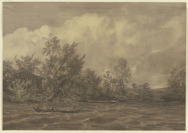 This is Jan van Goyen’s, "View of a Bank with Shepherds and Cattle", created with pen in grey. Van Goyen was a leading figure in the Dutch Golden Age, a period marked by unprecedented economic prosperity and cultural flourishing in the Netherlands. During this time, the Dutch identity was being shaped by the socio-economic transformations of the 17th century, and a growing sense of national pride was reflected in the art. Here, Van Goyen captures an idyllic scene of rural life, a subject that resonated deeply with the increasingly urban population of the Netherlands. Yet, the painting also serves as a reminder of the labor and resources that sustained this wealth. With its muted tones and serene composition, this drawing seems to invite us to reflect on our own relationship with the land and the complex dynamics that shape our society.