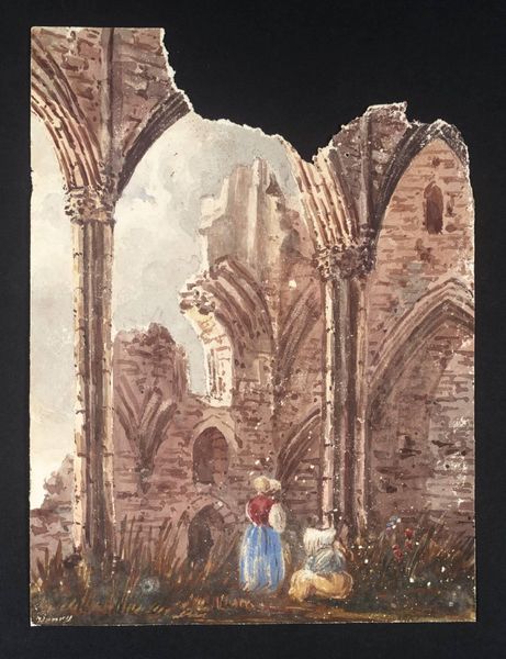 Here we see 'Interior of Lindisfarne Priory,' a watercolor by Thomas Girtin. The eye is immediately drawn into the skeletal remains of this sacred space, with its arches and columns rendered in a palette of muted browns and grays. This limited color range focuses our attention on the structure itself, highlighting its decay. Girtin masterfully uses watercolor to explore the poetics of ruin. The composition is structured around the fragmented architectural forms, with the arches acting as framing devices that lead the eye deeper into the space. These ruins are not just historical artifacts; they also act as signifiers. The broken arches could be read as symbols of lost faith or the transience of human endeavor. The interplay of light and shadow across the rough surfaces adds a layer of complexity, evoking feelings of melancholy and reflection. Ultimately, the painting functions as a meditation on time, memory, and the power of place. It reminds us that meaning is not fixed, but is continuously shaped through our engagement with art.