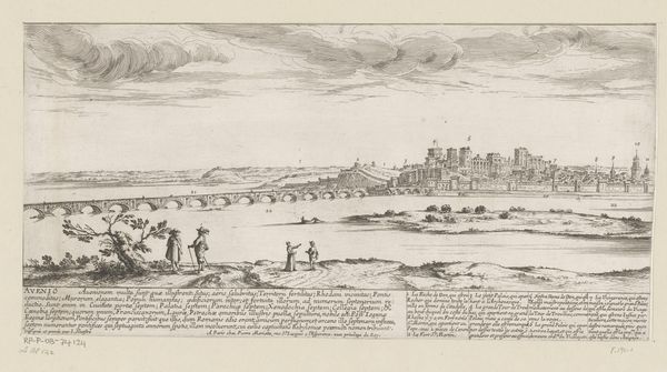 Israel Silvestre created this print of Avignon using etching, sometime in the 17th century. Etching involves coating a metal plate with wax, scratching an image into it, and then bathing the plate in acid. The acid bites into the exposed metal, leaving behind lines that will hold ink. This printmaking method was embraced for its capacity to produce detailed and precise images. Silvestre exploits this to offer us a panoramic view of the city. Notice how the texture of the clouds, the reflection on the water, and the architectural details are all delineated. Silvestre's choice of etching underscores the increasing value placed on accurate representations, aligning with early modern society's interest in scientific observation and documentation. Furthermore, the reproducibility of prints allowed for a wider distribution of images, feeding into the growing market for art and knowledge. The work involved in producing such a print, though less physically demanding than carving a woodblock, still required skill and time. By attending to these aspects of material and process, we can better understand the artistic, social, and economic values circulating at the time.