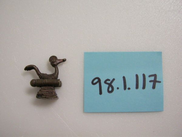 This lost-wax cast brass sculpture was made by an Akan artist in Ghana, West Africa. It's a "goldweight," and it would have been used with scales to measure quantities of gold dust. The figure represents a knot, a symbol of status, power, and interconnectedness. Gold weights like this one were not simply functional objects, but also embodied Akan proverbs and beliefs. As currency, gold dust played a crucial role in the social and economic life of the Akan people, particularly in the 17th and 18th centuries when they were active in the transatlantic trade. Goldweights were owned, regulated, and taxed by the state. By commissioning and controlling goldweights like this one, leaders of the Akan people could consolidate their wealth and authority. Understanding these objects requires examining their historical context, including trade routes, colonial power dynamics, and the visual culture of the Akan people.