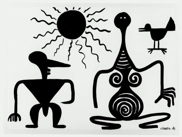 Keith Haring made this print using bold colors and simplified figures, probably as a silkscreen. It screams Pop Art, a world where process is about immediacy. The flat planes of orange, black, and yellow are like a playground where Haring's figures do their thing. Look at how the blue outlines these figures, making them pop out from the orange background. These bright colors give off a bold energy, like a comic book. There are so many simple shapes, the pure yellow circles, the stick-like limbs of the figures, and the wiggly lines radiating outwards from the figures. It feels like Haring is creating a little universe that is energetic and open-ended. Haring reminds me a bit of Léger, with the way he reduces figures to their most essential forms. Art is about connections, right? It’s about a conversation that keeps going, keeps growing.