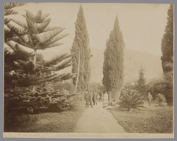 Curator: A sepia dream, isn't it? Before us, we have Luigi Pesce's "Bagh-takt a chiraz," captured in 1858. It resides now in the collection of the Metropolitan Museum of Art. Editor: Immediately, I'm struck by the reflections. The interplay of light on the water almost obscures what's above, turning it into pure form and tonality. A muted, dreamy effect. Curator: This photograph provides a glimpse into 19th-century Persia, reflecting a Western fascination with the "Orient," and of course, the socio-political implications of representing another culture. What are we meant to see? And what is Pesce showing? Editor: Showing, certainly, the power of composition. The strong verticals of the trees punctuate the horizontality of the pool, while the architecture anchors the left side, creating balance, albeit in a decidedly muted key. I find the house a bit severe looking in style for being called a paradise! Curator: Indeed. It raises the question: whose paradise? Certainly, these photographic expeditions served not only artistic interests but also imperial ones, mapping and documenting for strategic purposes. But what meaning is truly represented is forever locked by cultural shifts and by seeing from an external viewer looking inside. Editor: Perhaps. But looking purely at the photographic artistry, the almost monochromatic palette lends a timelessness. The softness—likely from the limitations of early photography— paradoxically adds to its ethereal quality. Did the socio-economic landscape dictate what an artist could technically capture? Curator: Certainly the limitations would constrain artistic ability, the lack of widespread wealth allowing those expeditions to bloom at certain social echelons, but art still blossoms from all levels of the classes! Though, the Orientalist gaze cannot be ignored; how Persian culture and landscape were marketed to a Western audience through photography undeniably influenced public opinion and subsequent political actions. Editor: Perhaps we impose too much now with historical hindsight, but if we accept that lens it does indeed lend a weight, to its serenity. Well, thank you, it’s given me much to contemplate regarding form, content, and context today! Curator: Absolutely, my pleasure, a fascinating interplay of representation and intention!