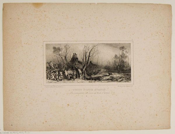 Nicolas Toussaint Charlet etched "Kampement van het Franse leger" in 1832, capturing a scene brimming with the motifs of military life and the quiet tension of encampment. The huddled soldiers and makeshift shelters evoke a sense of transient community, a visual echo of the Roman army's temporary fortifications, each symbol of provisional order amidst potential chaos. Consider the figure stooped by the river, a posture reminiscent of classical depictions of melancholia, here grounding the scene with a sense of weary introspection. This figure finds its brethren in countless images across eras, embodying the individual’s struggle against the backdrop of collective action. The emotional weight is palpable—a shared experience of anticipation and uncertainty. Such imagery taps into primal fears and hopes, engaging viewers through subconscious recognition of shared human experience. These symbols are not static; they evolve, becoming potent carriers of historical memory, constantly reshaping our understanding of conflict and resilience.