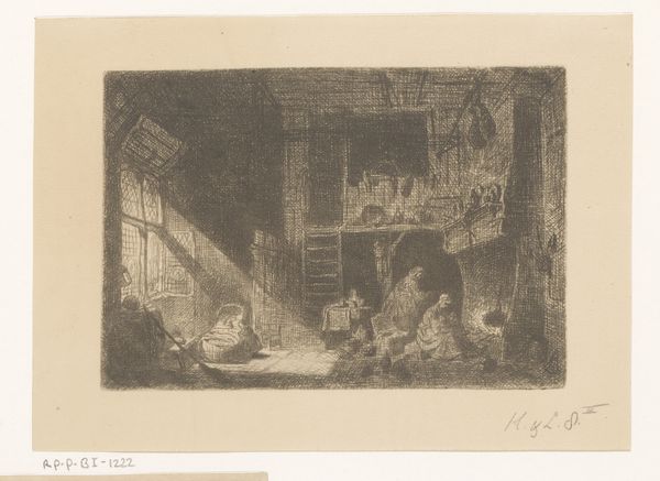 This etching by Eugène François de Block captures a domestic scene, its heart glowing around a hearth. The fireplace, a universal symbol, bridges warmth, sustenance, and familial bonds, yet it carries deeper cultural resonance. In ancient times, the hearth was a sacred space, a focal point for ritual and community. We see echoes of this reverence in countless depictions across cultures, from classical Roman hearth goddesses to medieval tapestries showing families gathered for warmth and protection. Note how the light from the fire casts long shadows, not unlike the flickering shadows in Plato’s cave, suggesting half-seen truths. The composition evokes primal feelings of security and belonging, engaging viewers on a subconscious level and inviting us to reflect on the enduring power of home. From the sacred fires of ancient temples to the modern-day electric fireplace, this symbol has resurfaced and taken on new meanings throughout history, but continues to provide both literal and metaphorical warmth.