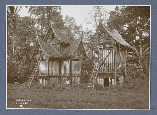 This photograph, taken by Christiaan Benjamin Nieuwenhuis, shows houses in a Batak village on Sumatra. The structures are built from the land, with materials that speak to the ingenuity and labor of their makers. Look at the high-pitched roofs thatched with local fibers, the sturdy wooden stilts, and the woven bamboo. These materials aren't just functional; they reflect the cultural and environmental context of Sumatra. The construction methods, passed down through generations, represent a deep understanding of the local climate and available resources. The photograph captures a moment in the daily life of the village. It reminds us that craft and making aren't just about individual expression; they are fundamental to how communities build their homes and sustain their ways of life. Appreciating this image means recognizing the profound connections between materials, making, and social context, blurring the lines between fine art and the everyday ingenuity of human creation.