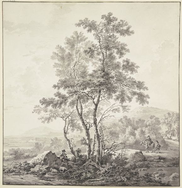 Jan Both created this landscape drawing with pen and brown ink in the mid-17th century, a time when Dutch artists were reimagining the natural world. Consider how landscapes were not just about scenery; they were also about identity and place. For Both, an artist who traveled to Italy, this scene reflects a longing and perhaps a reimagining of the Dutch relationship to the classical world of Italy. The ruin on the right hints at the weight of history, while the trees in the foreground offer a sense of rootedness. What does it mean to depict a landscape that is both familiar and foreign? This drawing invites us to reflect on the complex ways we relate to the spaces we inhabit and imagine. It's a reminder that landscapes are never just landscapes; they are mirrors of our own stories and histories.