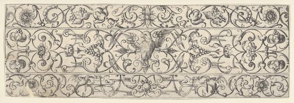 Theodor Bang created this design for Friezes with Birds, Flowers and Meandering Wreaths and Scrolls in the 17th century. This delicate drawing gives us insight into the decorative arts of the period. Created in Germany, it reflects a culture steeped in symbolism and elaborate ornamentation. The frieze, with its symmetrical arrangement of birds, flowers, and scrolling patterns, speaks to the era's love for balance and order. The drawing may have been a preliminary sketch for a larger work, like a tapestry or a mural. The meticulous details of the wreaths and birds suggest the influence of the engraver's workshop. Bang lived at a time when the printing press and printmaking had revolutionized the dissemination of visual imagery. Artisans skilled in these crafts were in demand, and institutions such as workshops and guilds exerted influence. To understand the work more fully, scholars might delve into the pattern books and decorative schemes popular at the time. These sources reveal the artistic conventions that artists like Bang both drew upon and helped to perpetuate.