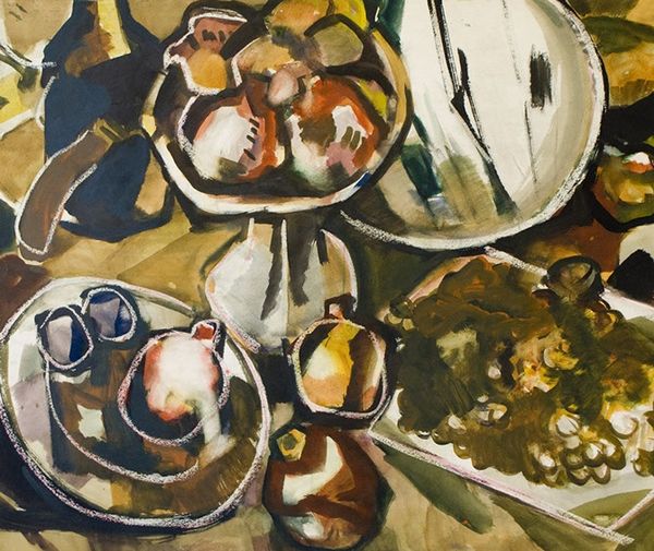 Arthur Beecher Carles made this painting, "Table with Flowers," without specifying the date, with oil on canvas. I love how the forms feel broken apart and reassembled, like a puzzle where the pieces don't quite fit. Looking closely, you can see the paint is applied in thick, juicy strokes. The colors are rich and earthy, punctuated by pops of bright yellow and blue. Notice the way the white outline around the plate is not perfect, instead it's wobbly and uneven, which gives the painting a sense of movement and energy. It’s like the whole scene is vibrating. Carles had obviously looked at Cubism, but also took note of Matisse’s use of colour. There's this beautiful tension between representation and abstraction, a push and pull that keeps the eye moving across the canvas. It reminds me of my own approach to painting. I feel like, as artists, we don't have to settle on one way of seeing, instead, we can embrace multiple perspectives at once.