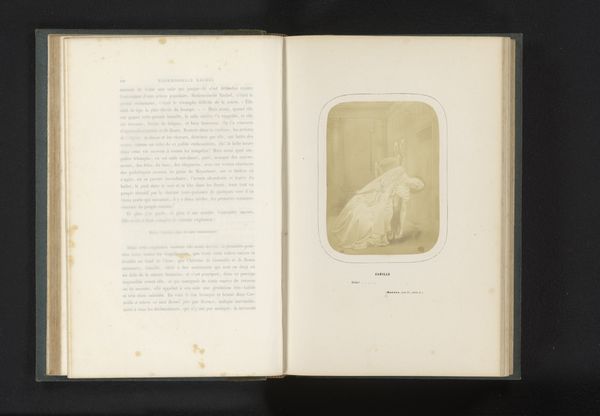 This photogravure reproduces a painting of a woman with a lute by Antony Serres and appears within a book of poetry. It is a piece that invites us to consider the complex interplay between visual art, literature, and the social milieu of its time, likely late 19th century France. The image is evocative, recalling the romanticism of earlier artistic movements. The woman, idealized and serene, with her lute suggests a connection to music, poetry, and the finer sensibilities of life. But its presence within a book, juxtaposed with a poem entitled "A La France" adds another layer of meaning. Is this woman a representation of France itself? The book might speak to the burgeoning sense of national identity, and the role of art in shaping it. What was the impact of the Franco-Prussian War on the nation? Was it self-consciously conservative or progressive? Understanding the artist, the poet, and the context in which they were working allows us to unlock its deeper resonance. Historical archives, literary sources, and studies of French cultural history can help us understand the conditions under which this artwork was made.