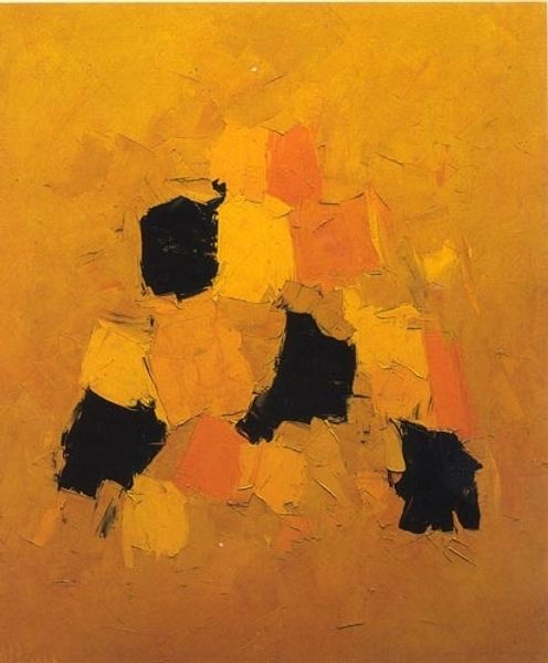 Joan Mitchell made this untitled painting with oil on canvas, and from the looks of it, the process was messy and fun. It’s like she’s having a conversation with the paint, letting it lead her. There's so much physicality here. The paint is thick in places, creating this incredible texture. The colors are bold - blues, yellows, oranges - fighting for attention, but somehow they all work together. Look at that big blue patch near the center, it feels like a deep pool, drawing you in. The brushstrokes are visible everywhere, like a map of her movements, and the surface is uneven and full of energy. Mitchell reminds me a bit of Willem de Kooning, someone else who wasn't afraid to get down and dirty with the paint. Both artists show us that painting isn't about perfection, it's about the joy of discovery and the beauty of imperfection. And isn't that what life is all about too?