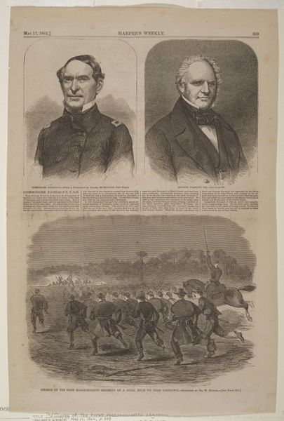 Winslow Homer created this print for *Harper's Weekly*, an illustrated newspaper, using the technique of wood engraving. This was a common method for mass-producing images at the time, and the final result reflects its means of production. The image was first drawn on a block of wood, then meticulously carved by skilled engravers. Look closely, and you can see the fine lines that create the image, defining the forms and conveying a sense of depth and texture. This was painstaking work, requiring precision and expertise. The print depicts a dramatic moment in the American Civil War, with Union soldiers charging a Confederate position. The image is full of energy and movement, but it also speaks to the brutal realities of war. Consider how the mass production of images like this one shaped public opinion and understanding of the conflict. Ultimately, this print reminds us that even seemingly simple images can be rich with meaning, reflecting the social, political, and technological forces of their time.