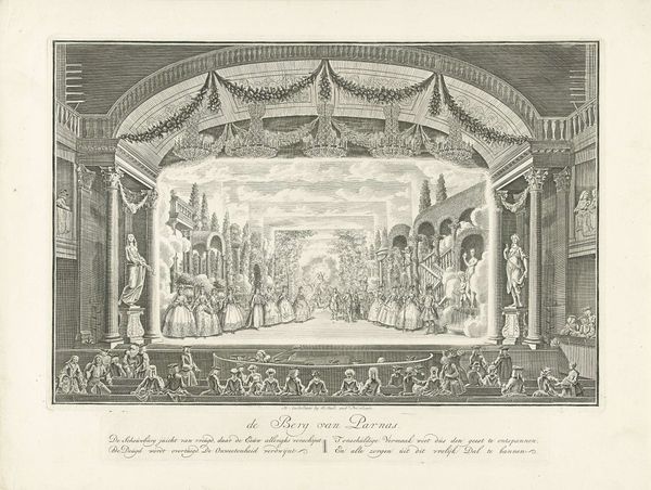 Here, an anonymous artist depicts an illuminated triumphal arch celebrating the alliance with France in Utrecht, 1786. The engraving’s stark contrasts and meticulous linework create a compelling visual rhythm. The composition is anchored by the symmetrical structure of the arch, its architectural details rendered with precision. Look at the interplay between light and shadow, created by the artist’s strategic use of hatching and cross-hatching. This formal technique highlights the festivity, and draws our eye to the allegorical figures and decorative motifs. The arch functions almost as a semiotic structure, a signifier of political harmony. Consider how the artist manipulates perspective to draw viewers into the scene, placing us amongst the onlookers. The engraving is not just a depiction of an event, but a structured commentary on power, alliance, and public spectacle. Notice how the rigid architecture contrasts with the bustling crowd, suggesting complex relations between state authority and popular celebration.
