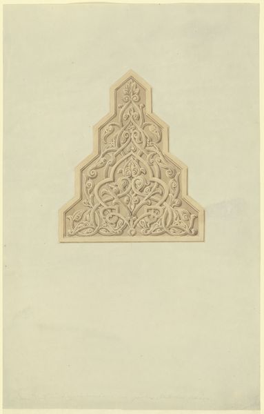 Editor: Here we have Carl Friedrich Bärthel's "Ontwerp voor een juweel," a jewelry design from around 1800 to 1810, rendered in pencil on paper. It strikes me as very formal, almost severe, despite the delicate linework. How do you interpret this piece? Curator: Well, given the Neoclassical style and the historical context, it’s interesting to consider what jewelry represented then. It wasn't just about aesthetics; it signified social status, political allegiance, and even personal beliefs. The rigid symmetry and geometric forms suggest an adherence to Enlightenment ideals of order and reason, a stark contrast to the more flamboyant styles of the preceding Rococo era. Do you think it could reflect changing attitudes towards gender, maybe away from ornamentation? Editor: That's a great point! The shift away from Rococo excess certainly seems significant. I hadn’t considered how these designs could relate to broader socio-political movements. Are there particular symbols or motifs common in Neoclassical jewelry that carry specific meanings? Curator: Absolutely. Look at the frequent use of classical figures and architectural elements. These often referenced republican virtues, like civic duty and patriotism, which were central to revolutionary ideologies circulating at the time. And sometimes even resistance! Imagine the jewelry commissioned after the French Revolution as both assertions of power and subtle rebellions against the old guard. Can you envision someone wearing this design in that context? Editor: I can see it now—jewelry as a form of silent protest or a statement of personal values. Thanks for opening my eyes to the historical and political dimensions embedded within seemingly simple design. Curator: And thank you for recognizing the intricate relationship between design and the society it inhabits. These conversations are crucial for a richer appreciation of art and its multifaceted meanings.