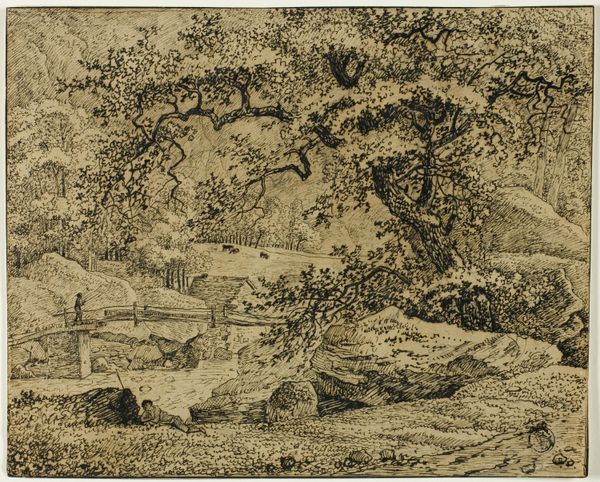 Alexander Schaepkens made this print, *Huizen aan de river*, using etching, a printmaking technique that dates back to the Middle Ages. The image starts as a metal plate, usually copper or zinc. The etcher covers the plate with a waxy, acid-resistant ground. Then, using a needle, they scratch away lines of the composition, exposing the metal. The plate is then submerged in acid, which bites into the exposed lines, creating grooves. The longer the plate sits in the acid, the deeper the lines become, allowing for a range of tones in the final print. The plate is inked, and then wiped clean, leaving ink only in the etched lines. Finally, the plate and a sheet of paper are run through a press under high pressure, transferring the ink to the paper. The result is an image with a characteristic velvety texture, a testament to the labor-intensive process involved. Schaepkens’ print provides us with a glimpse into 19th-century Dutch life. The print represents a skilled process that straddles the line between craft and fine art, reminding us of the value of both concept and execution.