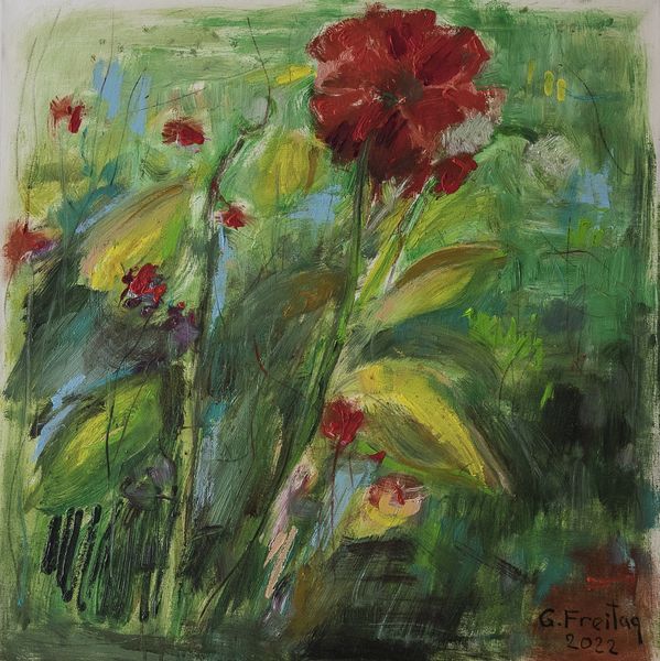Gazmend Freitag painted this sunflower in 2022, rendering the bloom with thick strokes of oil on an 80 x 80 cm canvas. The sunflower, or "Sonnenblume" as it's known in German, is more than just a pretty flower. Its radiant, sun-like form has captured human imagination across cultures and time. Think of Apollo, the Greek god of the sun, whose symbolic association with the sunflower reflects its daily turn to follow the sun's path. Similarly, in Peruvian Inca culture, the sunflower was a sacred symbol of the sun god, representing divine power. The symbolic weight of this flower is passed down through history, where it appears in Van Gogh's famous sunflower series as a personal expression of gratitude and joy. Freitag’s painting is part of a larger visual language, each artist imbuing the symbol with personal and cultural significance, revealing the powerful, recurring nature of symbols in art.