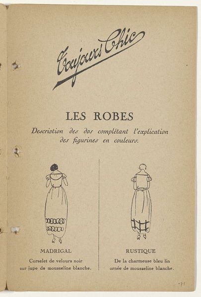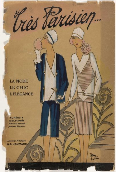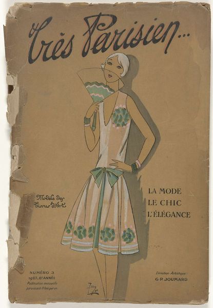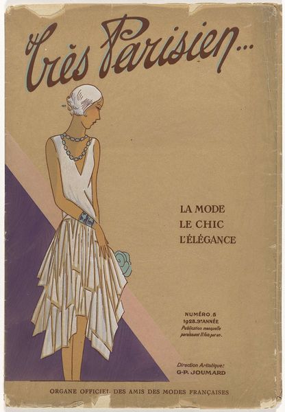 Editor: Here we have “Toujours Chic / pour servir à l'histoire de la mode. Hiver 1921-1922: titelpagina” by G-P. Joumard, created between 1921 and 1922. It appears to be a poster combining drawing and typography, now held at the Rijksmuseum. The image has such an interesting blend of stylish illustration and bold text. What social narratives do you see unfolding within this piece? Curator: This poster offers a window into the societal values and aspirations of the post-World War I era. It speaks volumes about the burgeoning fashion industry and its role in shaping the image of the modern woman. How does the choice of typography, for example, reflect the broader artistic movements of the time? Editor: I notice the Art Deco influence and a sense of streamlined elegance, a movement away from earlier ornate styles. Curator: Exactly. The simplification of form and embrace of modernity were key characteristics of Art Deco. And consider the poster’s stated purpose, "to serve the history of fashion." What does this tell us about the cultural importance being ascribed to fashion at that moment? Editor: It suggests fashion was seen as a subject worthy of historical record, not just fleeting trends. Curator: Precisely. The poster participates in constructing a specific narrative about French chic and its cultural value, primarily for the wealthier social classes. Who had access to 'chic,' and who dictated its terms? Was 'chic' a unifying factor or another means of social stratification? Editor: This really makes me consider the audience and the power dynamics within the fashion world during the 1920s. It wasn't just about beautiful clothes; it reflected and reinforced social hierarchies. Thanks for opening my eyes to the social implications embedded in this fashionable poster. Curator: And thank you for bringing your fresh perspective! It’s by questioning these established narratives that we can truly understand the poster’s place in history and its continued relevance today.
