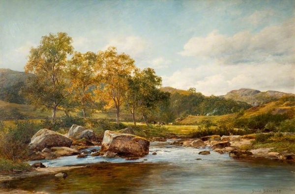 William Trost Richards created this oil on paper painting, ‘Sunset on Mount Chocorua, New Hampshire,’ sometime during his career. It's a serene scene, typical of the White Mountains School of painting, which flourished in the mid-19th century. This artistic movement emerged alongside growing interest in landscape as a marker of national identity. As more Americans moved to cities, the wilderness became an idealized space, a repository of values seen as fading in urban life. Artists like Richards captured these scenes, feeding a public appetite for images of untouched nature. Mount Chocorua itself had become a popular tourist destination, accessible via the expanding railway lines. So, while the painting presents a seemingly pristine wilderness, it's also a product of increasing industrialization and tourism. To understand the painting fully, one might consult travel guides and period writings to get a sense of how the public perceived these landscapes. We see that the meaning of art is always changing, shaped by the institutions and social contexts in which it circulates.